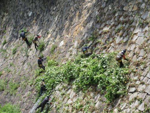 「お草取り」というのは、私が勝手に言っているだけですが、これほどの大行事は、むしろ観光イベントとして成り立つのでは? と個人的には思っています。(^-^) こんな暑い時期に・・・なんですが、たぶん、夏休み前のお化粧直し? それに、今は一番新緑が繁…